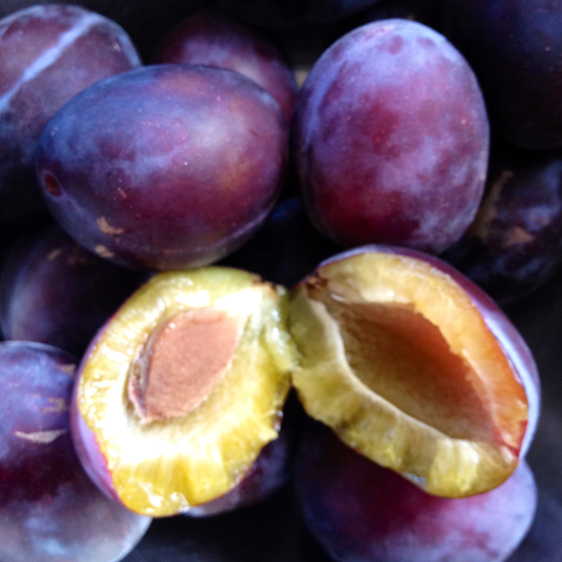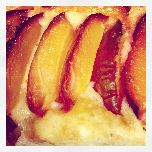 The trees are laden this year with plums. My favourite has always been the prune plum. I love the way it splits in half to reveal a bright yellowy-green center with a pit that comes away cleanly. They’re great in so many ways for baking. Here’s an Austrian recipe – old school – but so yummy.
