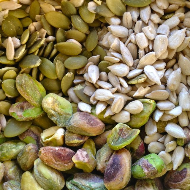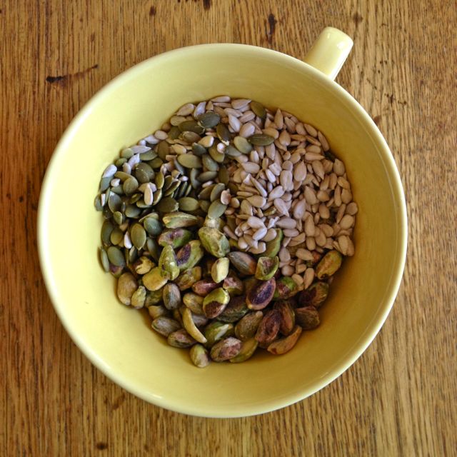 about 1/2 c each of raw sunflower seeds and raw pumpkin seeds