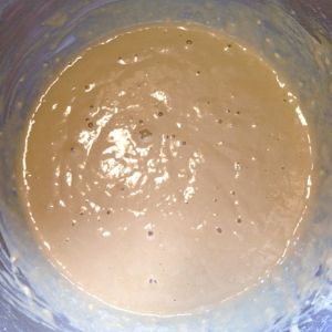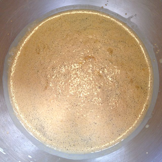Proof yeast in molasses sweetened water in the mixer bowl.