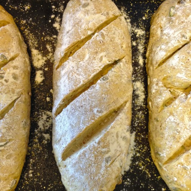 Punch down and form into 3 equal sized oblong loaves (they’ll be just over 500 grams each).