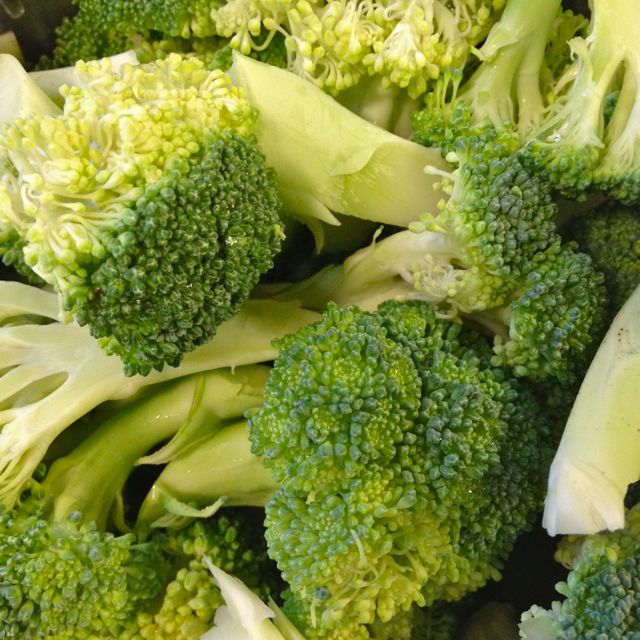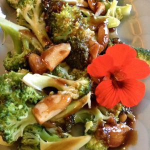 For this recipe & photos, I have used broccoli, as when I reached for the Gai Lan, I realized it looked like Swiss Cheese. Many happy little organic caterpillars had taken up residence in its leafy folds. Our chickens thought it was particularly good! As we live over the ocean from the market, we islanders are very good at using what we have at hand.