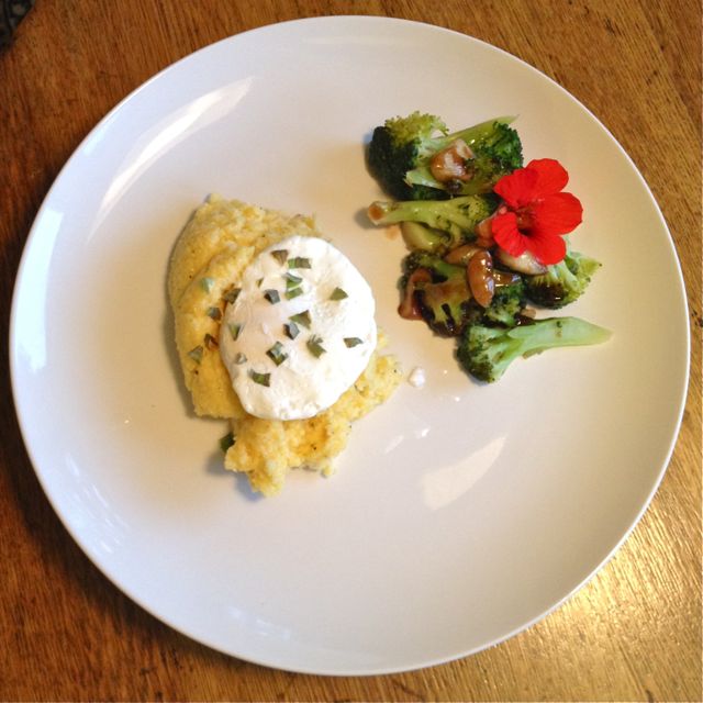 Pour the sauce mixture over the greens and serve. I’m quite happy to have a supper of this, partnered with polenta & a poached egg.