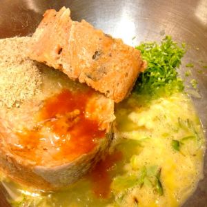 Add in the breadcrumbs, lime zest, lime juice, Tabasco & salt.