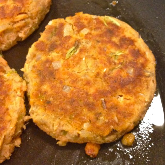 Heat the oil over medium – high heat, in a skillet large enough to hold all six cakes, or use two skillets.