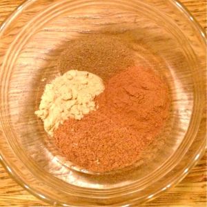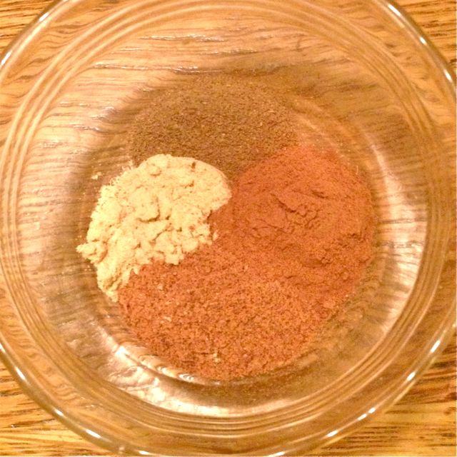 In a small bowl stir together the four spices. Reserve 1 t of the mixed spice for the streusel topping.