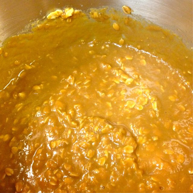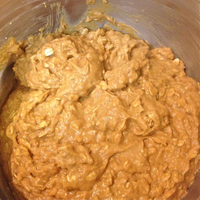 Add the dry ingredients to the liquids and oatmeal, and stir until just combined.