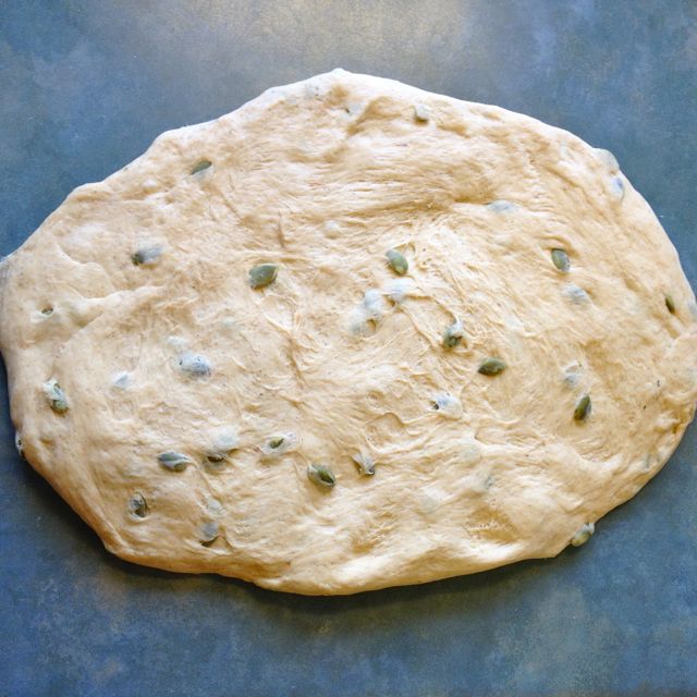 A basket of freshly made bread on a table seems to tell people that you care. Whether it’s a wedding or a mid-day family dinner, it is always appreciated. Over the years, I’ve tweaked several different bread recipes, so that I can bake them efficiently, with consistent results. This bread has a fine crumb, and is absolutely beautiful in colour. If you want to serve a more elegant bread, simply leave out the pumpkin seeds. This time of year, when we are reaffirming that we do, in fact, care about those around us, take the time to share bread.