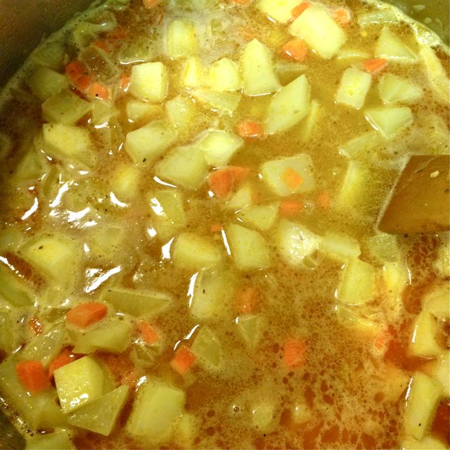Add in the potatoes, adding a bit of water, if necessary, to have the vegetables just submerged. Cook until the potatoes are tender.