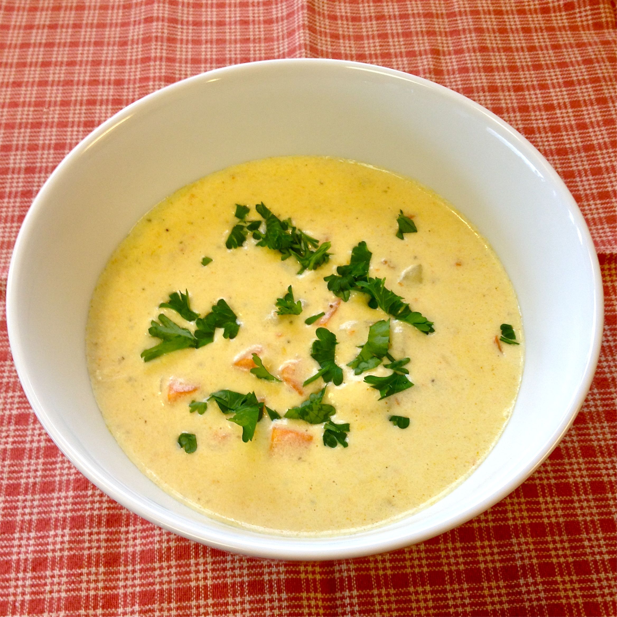 Whisk the flour into the cream. (The flour will attach itself to the fat, and you’ll have a lump free soup.)