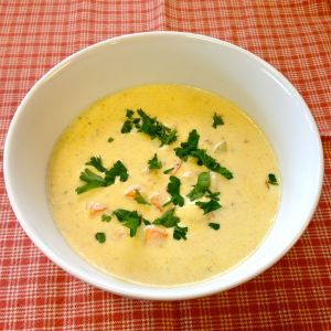 It calls for Pacific Sockeye salmon, but you could use any wild Pacific salmon. For the white fish, halibut is best, but you could use Pacific cod or Atlantic Pollack in its place (but then you can’t really call it Pacific Fish Chowder).