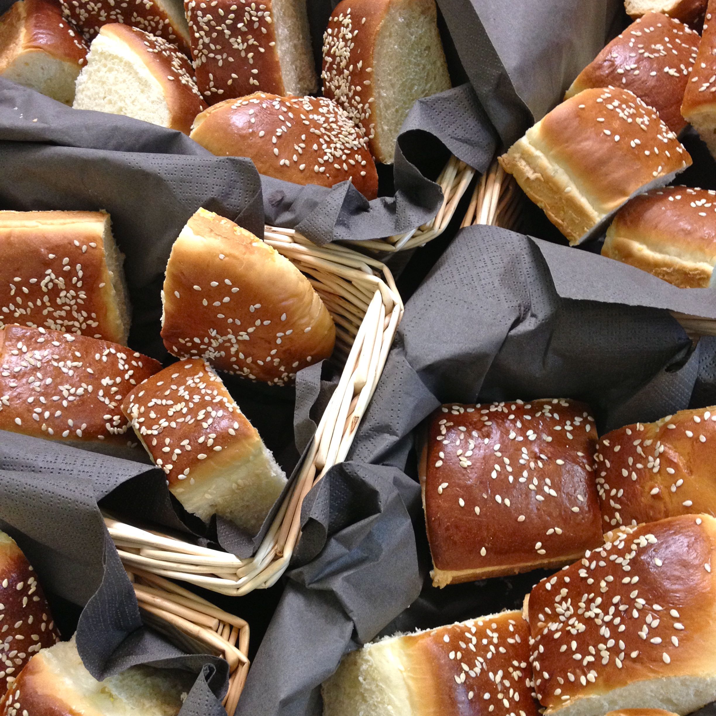 Bread with a meal, is a standard. Although it is served in many forms, from quick fruit breads to artisanal sourdoughs, a soft white roll is still the standard. I’ve rolled thousands of buns in my time, and still end up with a cramped wrist. To avoid this and to increase the amount of soft uncrusted bread I came up with this simple recipe that makes 36 pan buns. These work well as small sandwiches, are great with stews & soups, but are fancy enough to accompany a holiday dinner. Thinking on it, split a bun, spread one side with cranberry sauce, the other with mayonnaise, and wedge in some sliced turkey, yum!