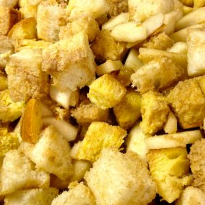 Pour over bread mixture in bowl; again, toss well until all is well coated.