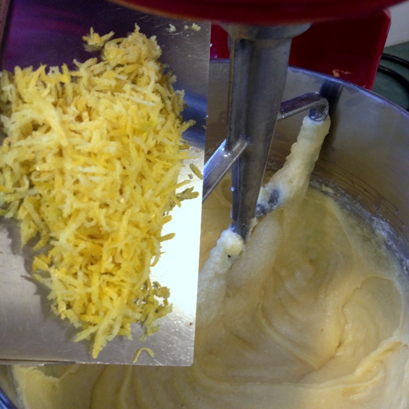 Beat in the remaining cup of flour and the lemon zest, until smooth and creamy.