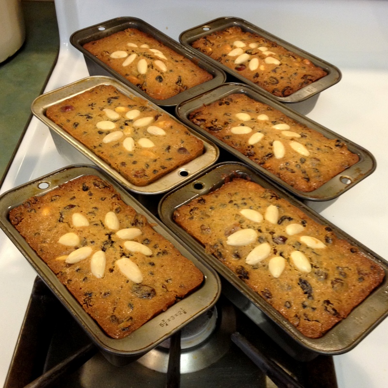 This is our family’s fruitcake. My parents had it for their wedding cake; we had it for ours, and many cousins and other relatives have as well. Pounds of it are made every Christmas, soaked in brandy and left to age. It makes a great snack for hiking, boating & fishing on the west coast (would probably work on any coast), so extra is made to use during the rest of the year. Often I still have a piece in the pantry from the year before, found when I’m cooking that year’s batch.