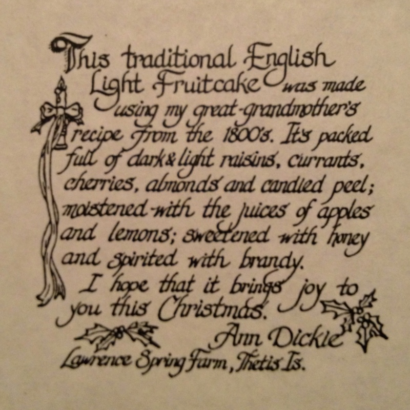 Emily Allen was my mother’s mother’s mother. She lived in London in a big old house on Palmers Green (still stands today) with her husband and large family. Pictures we have of the early years of the 20th century show them scrambling over seaside rocks or climbing over hills and dales (literally) with picnic baskets and sports equipment in tow. Her recipes from that time are barely legible now, faded on well used and splattered pages. Her recipe showed two forms, a dark fruitcake and a light fruitcake. There’s only a couple of ingredients that create the difference. Honey and cider for the light cake and molasses and grape juice for the dark cake. There was a scribbled note about black currant jelly, and she may have used it instead of the molasses. I wonder if it really is her recipe, or was it her cook’s?