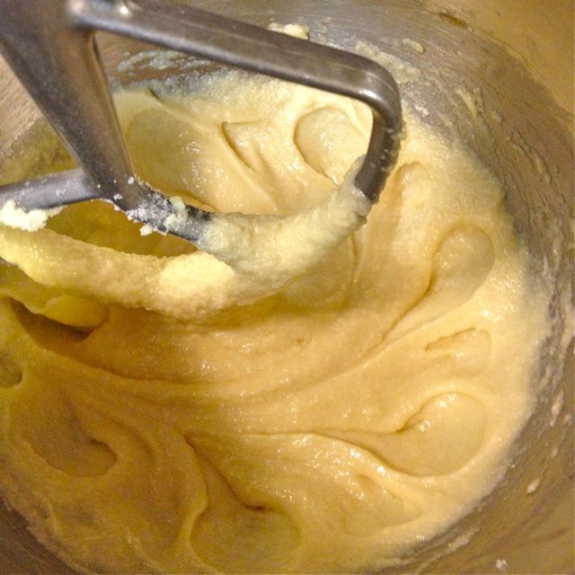 Beat in the eggs, one at a time, until creamy and fully incorporated.