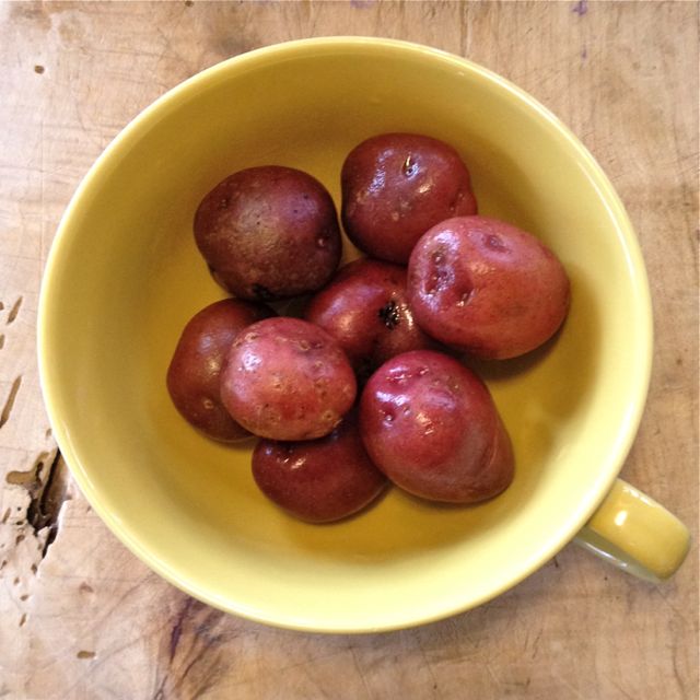 Cook the potatoes in salted, gently boiling water for 15 minutes or until a knife pierces to the center easily.
