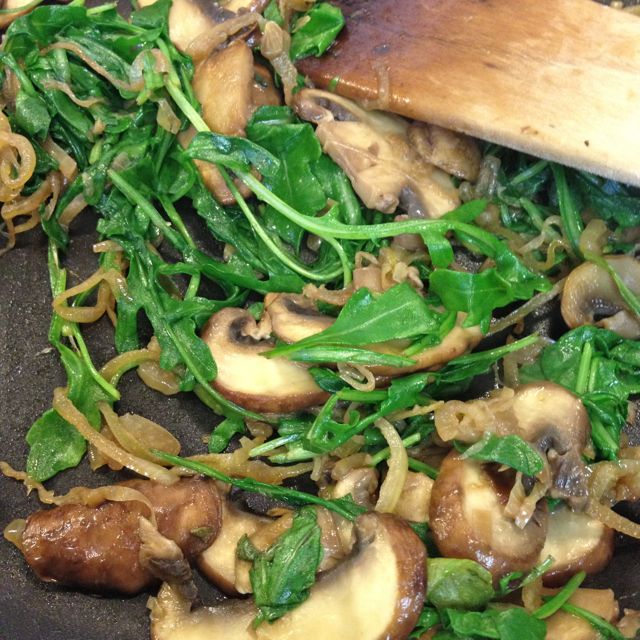 - 4 good-sized mushrooms, brushed clean, stems trimmed, and sliced