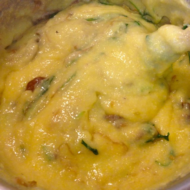 - Leftover cooked baby potatoes, sliced (not mashed) enough to give you about ¾ cup