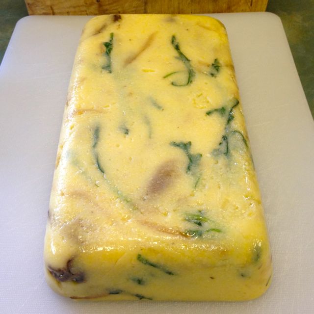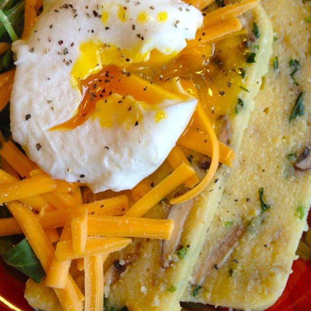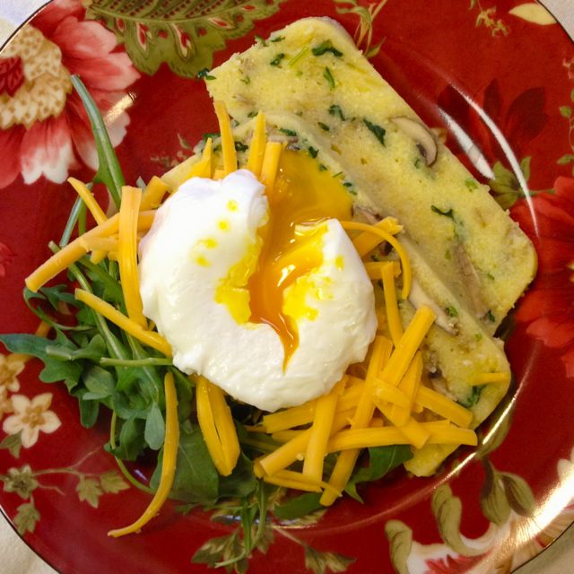 A warm breakfast without eggs or gluten is easy to do ahead of time by making this savory polenta slice. It makes enough for 4 good-sized servings, and has enough of a nutritional punch to keep you going for several hours. Simply reheat it either by using the microwave or gently frying in a bit of oil or butter. If you want to add more protein, put some grated cheese on top, and broil it until the cheese is melted. My favourite add on is to top a slice of polenta with a poached egg. Either way, it is delicious and nutritious, an easy start to your day.