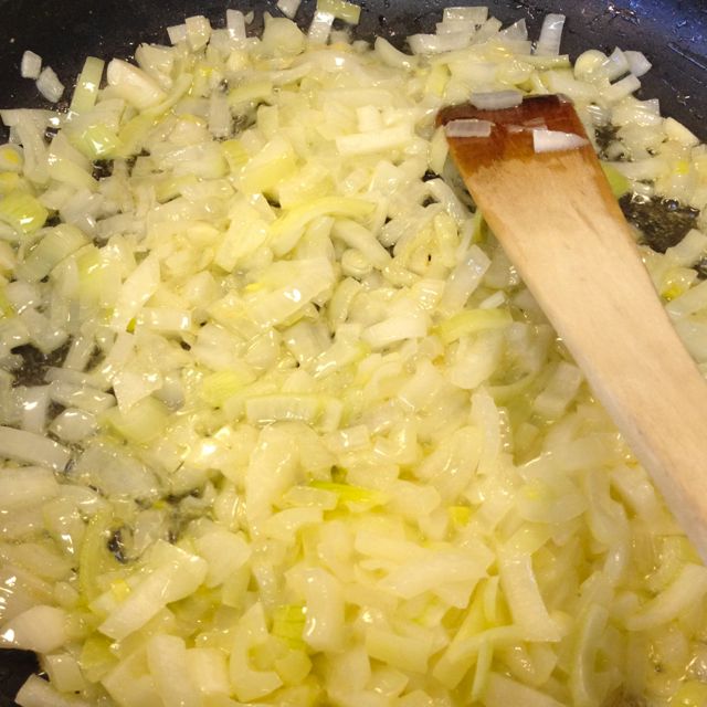When it’s all melted and foaming, add in the onions. Cook, stirring occasionally for 3 minutes.