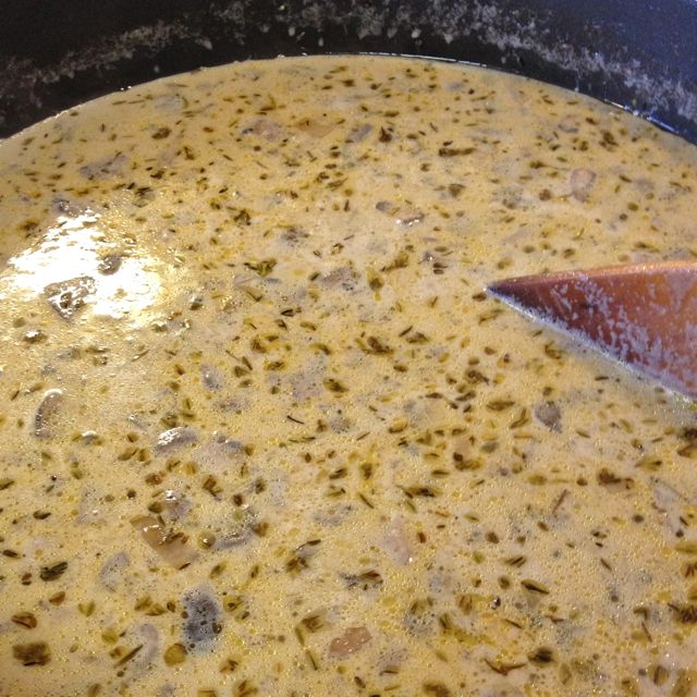 Slowly pour in the stock and bring back to a gentle boil. Cook for about 10 minutes.