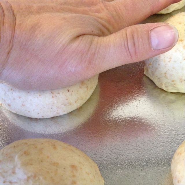 Flatten very gently if needed to maintain the hamburger bun shape.
