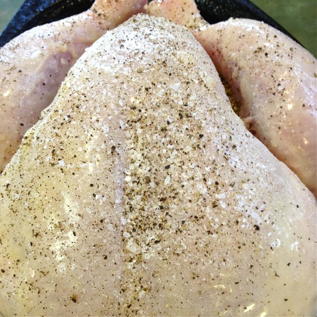 It’s been several years since we last raised any poultry, and the flavour of store bought just doesn’t have the flavour of homegrown. It’s well worth the effort to find someone in your area who raises meat birds on a vegetarian diet (except for any bugs the bird finds itself). You don’t get handy little packages of boneless, skinless chicken breasts, but you do get a rich bird that is perfect when roasted.