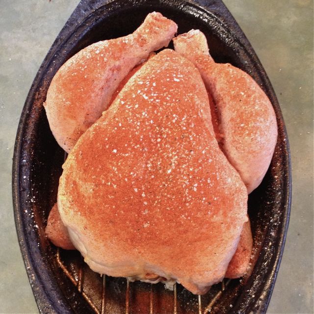 1 roasting chicken about 4 lbs (bigger takes longer, allow for about an extra 15 minutes per pound)