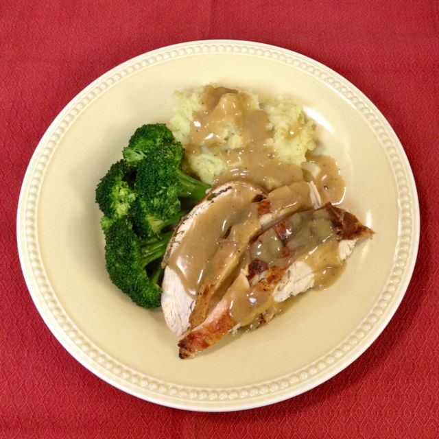 While it sits, prepare gravy, using the drippings with any excess fat removed. It’s okay if there’s some fat, it makes for much better gravy.