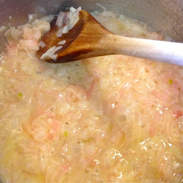 Add in the shallots, and cook for 3 – 4 minutes until pale pink. Do not let them brown.