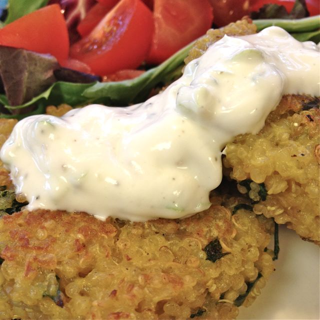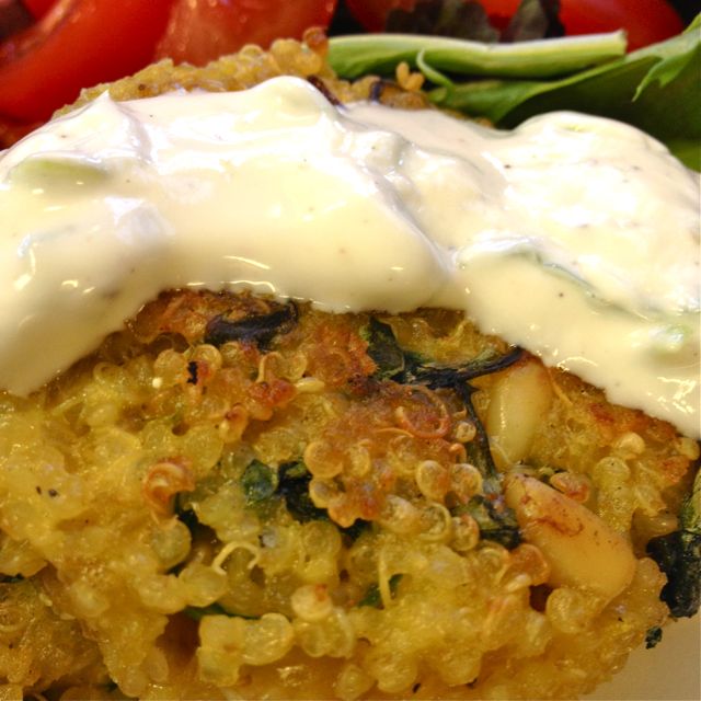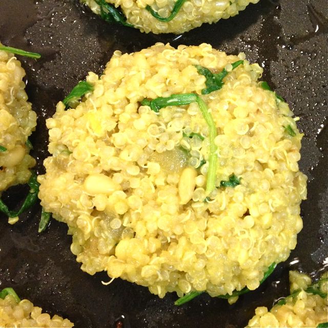 I am always on the lookout for vegetarian main dishes that can hold their own on a menu. Gone are the days of simple substitutions for animal protein, to satisfy the needs of a few vegetarians. As I’ve mentioned before, meat is just one of several dishes that go together to make a meal. There should be at least one complex, wonderful vegetarian dish that everyone at the table looks forward to. I had been trying a few ideas along the lines of grain cakes, when I received an issue of Canadian Living that showed their most downloaded recipe, Quinoa Cakes. So look no further – these are amazing. I may have switched an ingredient or two, and made a slight change, but only because I may have had a replacement on hand and also considered the merit of incorporating the pine nuts into the cakes instead of sprinkling them on top.
