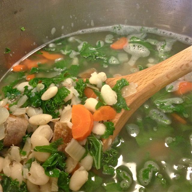 This so easily becomes a vegetarian soup, just leave out the sausage, and add in ½ t of dried chilies when you’re sautéing the onions.