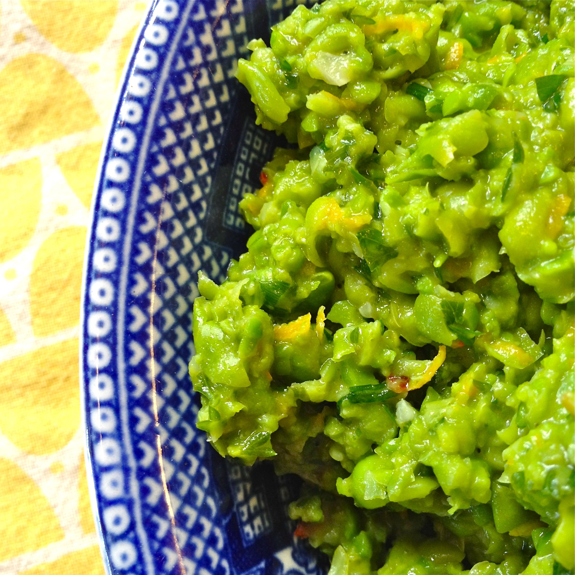 Funny how the only vegetables I have in the pantry or the freezer are tomatoes and peas. Tomatoes are such a go to vegetable for most of us for sauces, pasta etc. The peas are one of the very few vegetables that can handle being frozen and still give you a good, fresh tasting product when cooked. I use them in risotto, as a quick side dish when the crispers are getting low, tossed in a salad, and for this very fresh tasting spread. A thin sliver of rustic bread with a smear of these peas is an amazing snack. So, don’t be proud, keep a small bag of good quality frozen peas at hand and use them to their fullest potential!