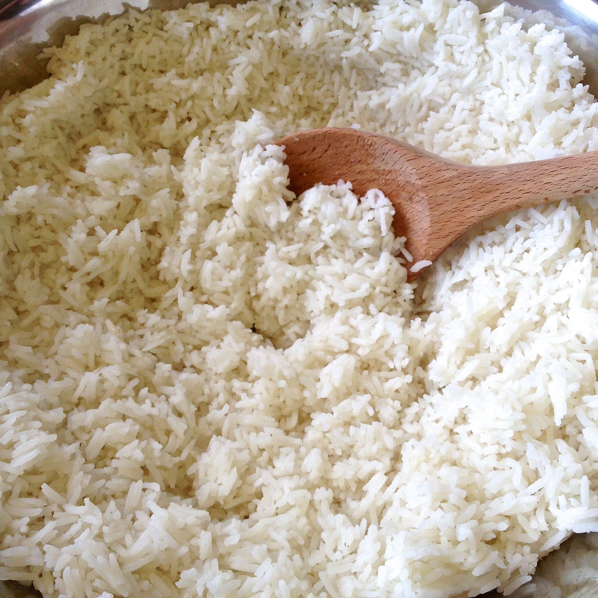 When the rice has finished resting, empty it into a large mixing bowl. Toss gently, just a few times, with a large spoon or rice paddle, while it cools a bit, for about 5 minutes.