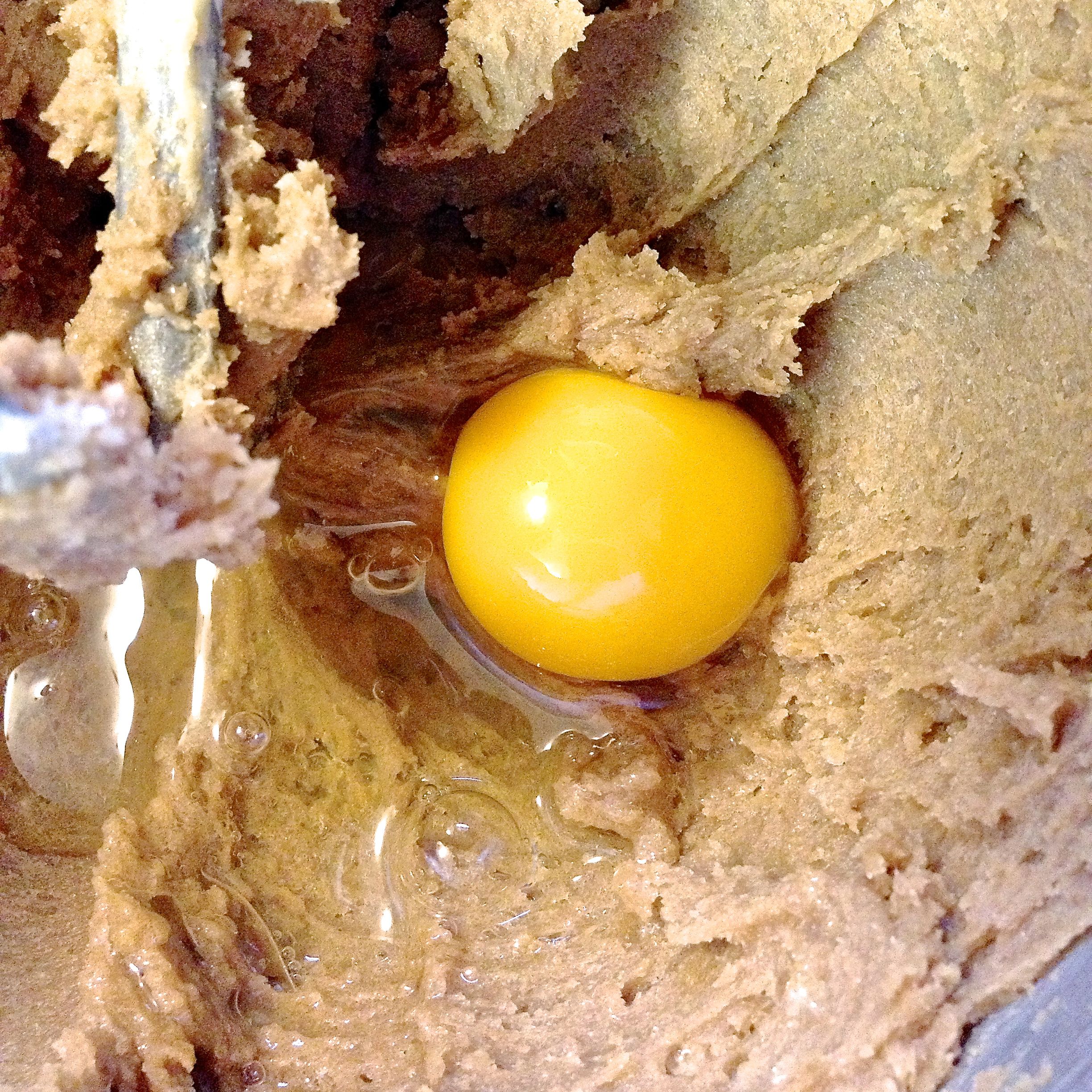 Add in the egg and the molasses and beat until smooth and uniform, cleaning the sides of the bowl as needed.