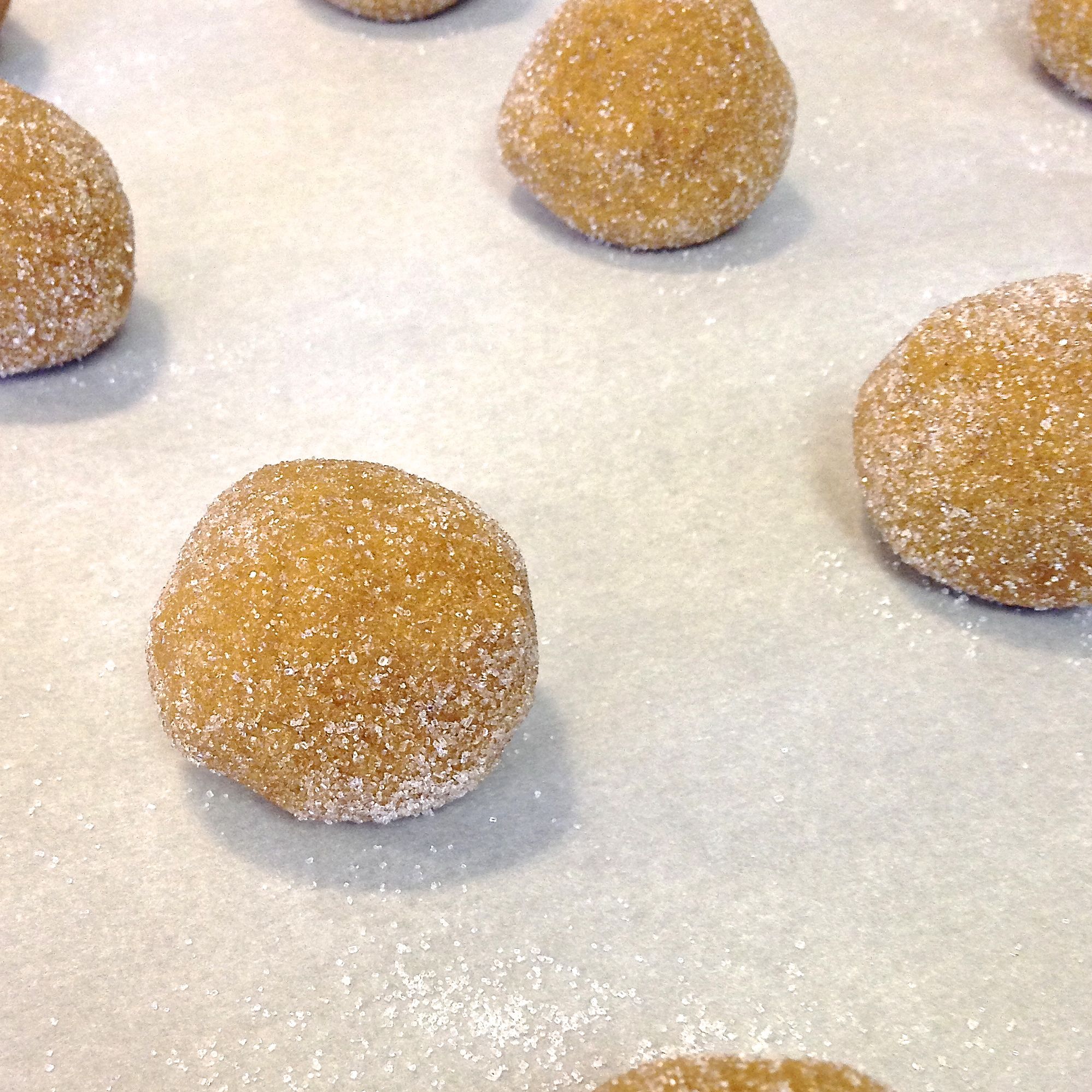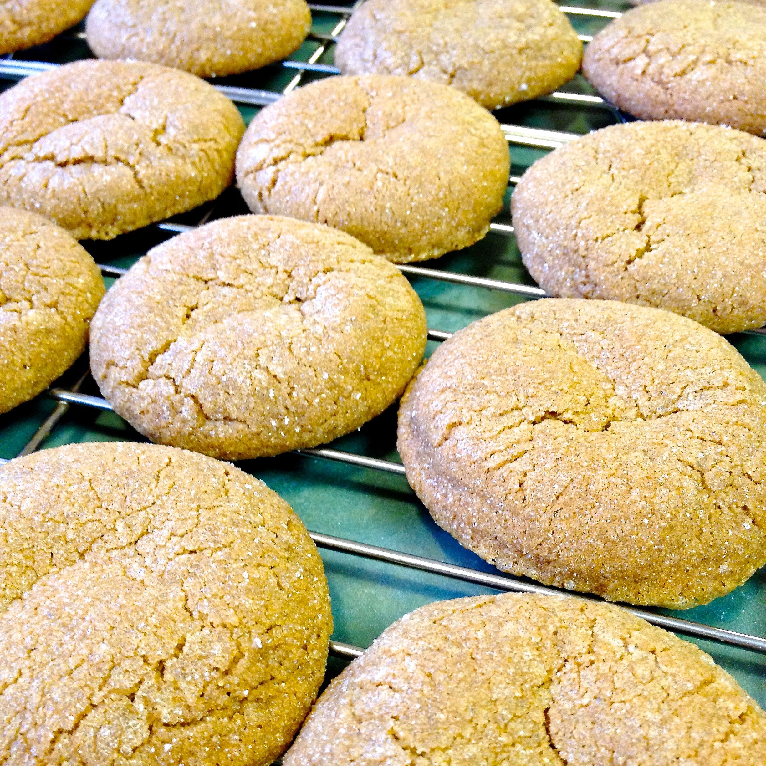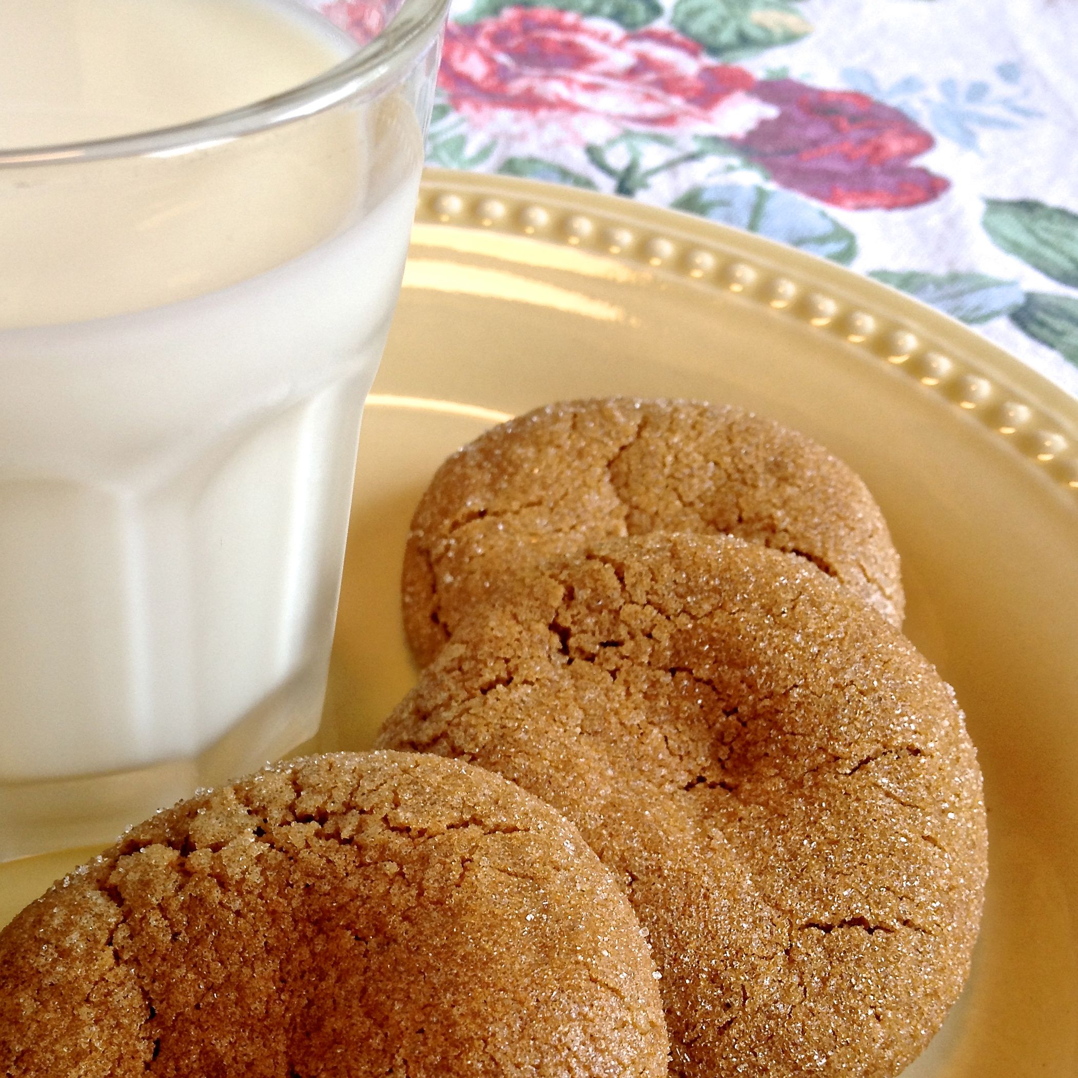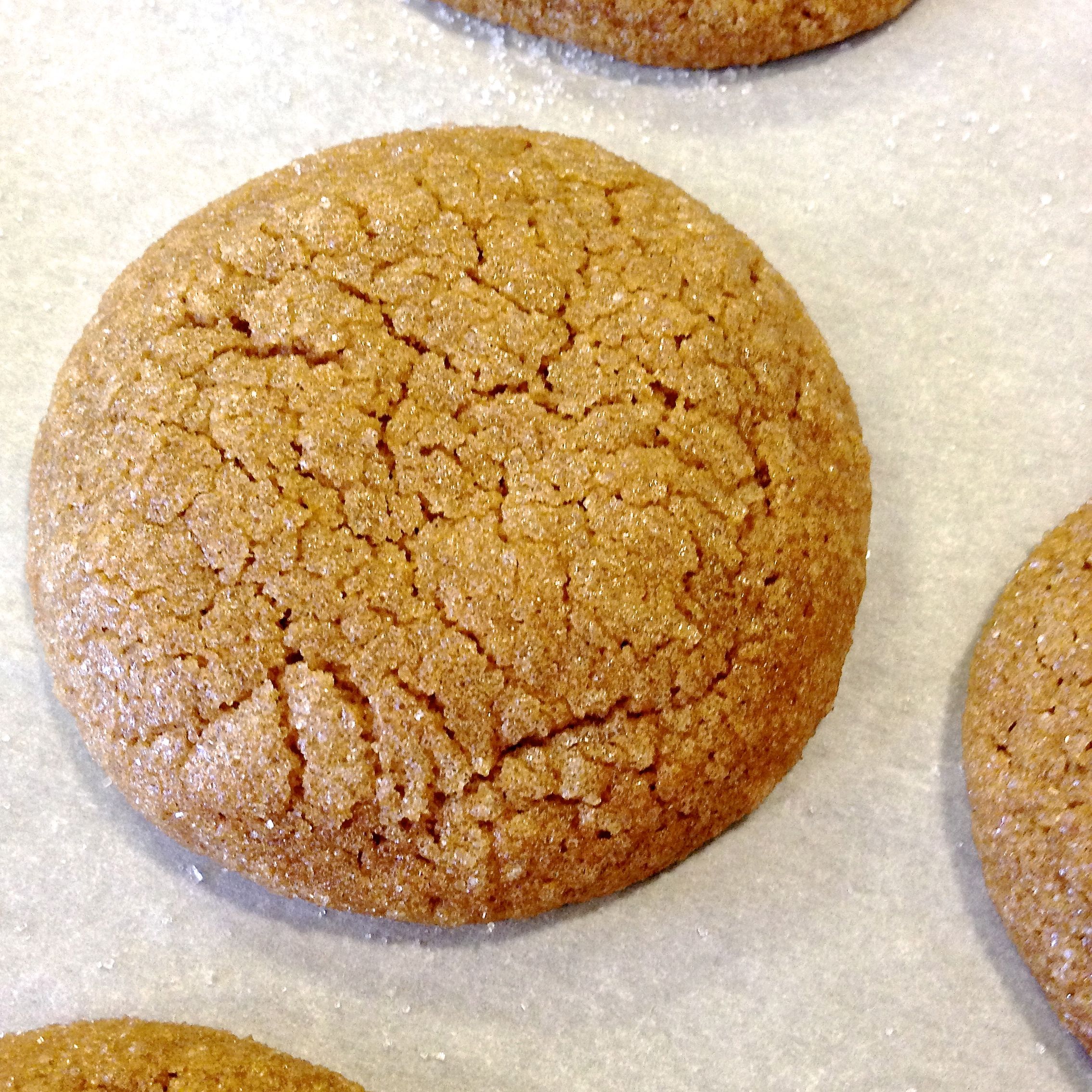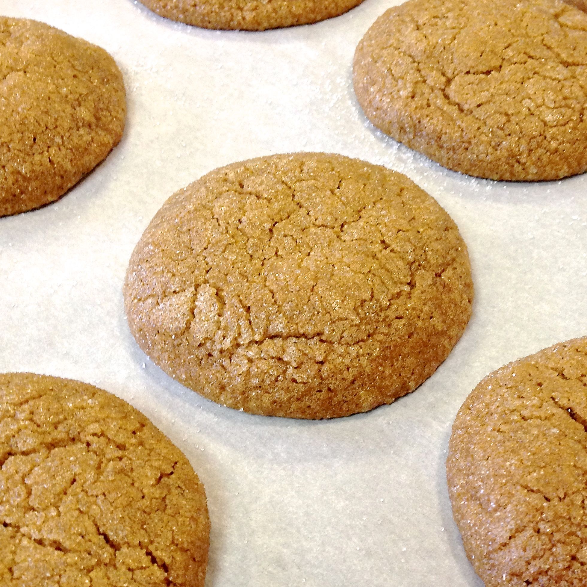 These were one of the first cookies I baked unassisted as a child. I can well remember rolling the balls of dough in sugar and placing them in lines on the cookie sheets, carefully putting drops of water onto the sugared top of the unbaked cookies. This “crinkles” their tops, and creates a bit of crunch.