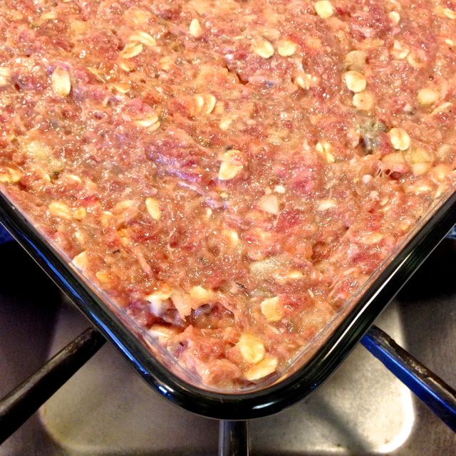 Who knows where this recipe came from, probably torn out of a newspaper sometime in the 1950’s? Our family had lots of love but not lots of money, so thriftiness was instilled in us all, and I am sure this was one of Mom’s ways of stretching the food dollar. This makes fabulous meatloaf sandwiches, and if memory serves me right, we used to be served this on a Friday night and then be fed it in sandwiches over the weekend.