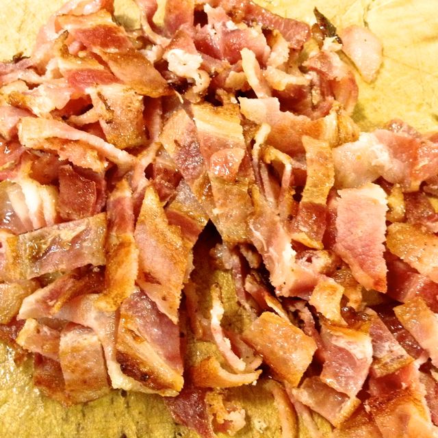 Repeat the first three layers (the bacon is only in one layer), finishing with the cheese.