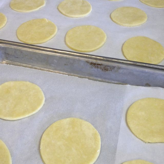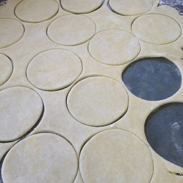 Roll out the second half of the pastry dough, and cut into 3” rounds, about 6 at a time.