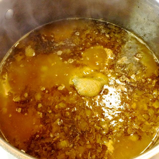 A piece of cheesecloth and some kitchen string for tying up the herbs.