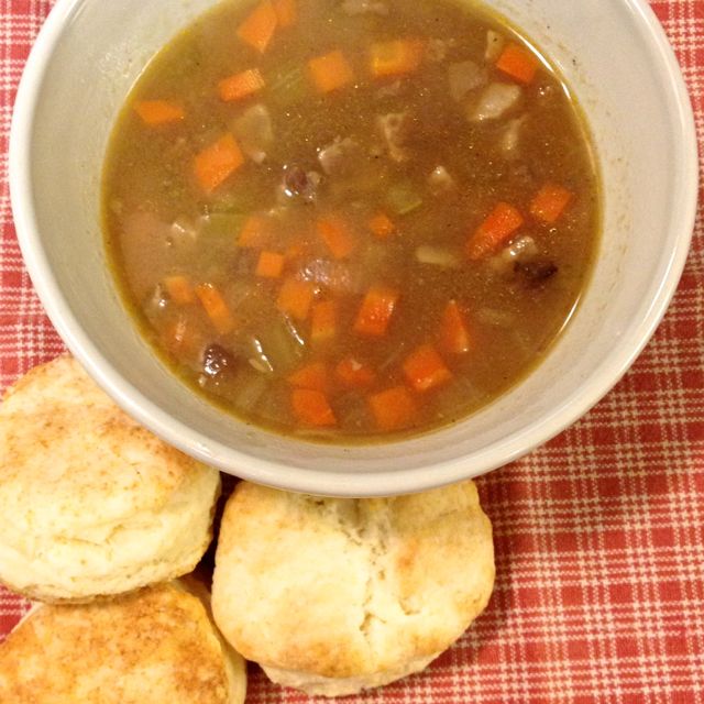 This soup is one of my all time favourites. I think I was first introduced to it in a red & white labelled can. Now it is made once or twice a year (there’s only one tail per animal). Cook the meat, creating the stock, one day; put together the soup the next. Take your time, no one is expecting you to rush while making a pot of soup.