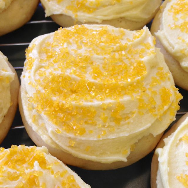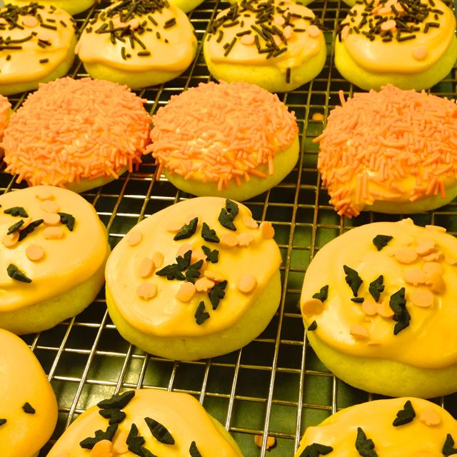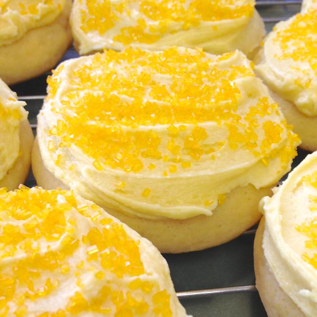 Sometimes a cookie just needs to be a cookie. It should immediately satisfy, and make you want at least one more. These are not the chock-a-block full of nutrition ones that make sure you’re getting all your daily fibre & other requirements, because really, all you asked for was a cookie. These are the big, soft sugar cookies of yesteryear. No rolling pins, no hand painted delicacies. Capped off with a swirl of velvety icing, these are simply a perfect blend of the basics, butter, sugar, eggs, and flour. They do well as a normal size cookie, and amaze as dessert size cookies.