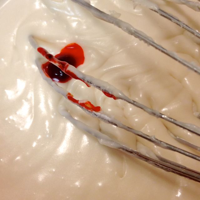 Add in food colouring if desired. For a medium tone, use about ¼ t of paste colouring.