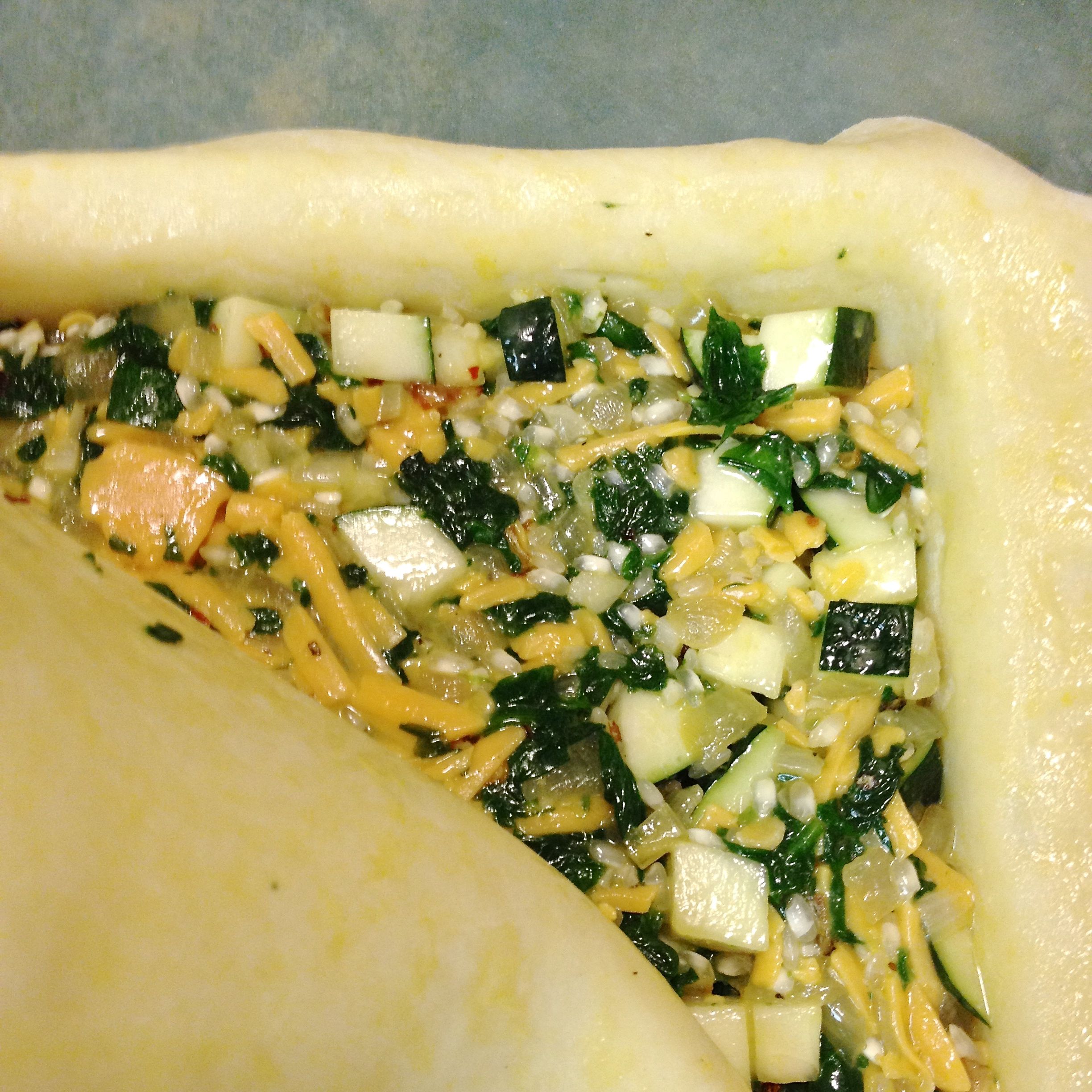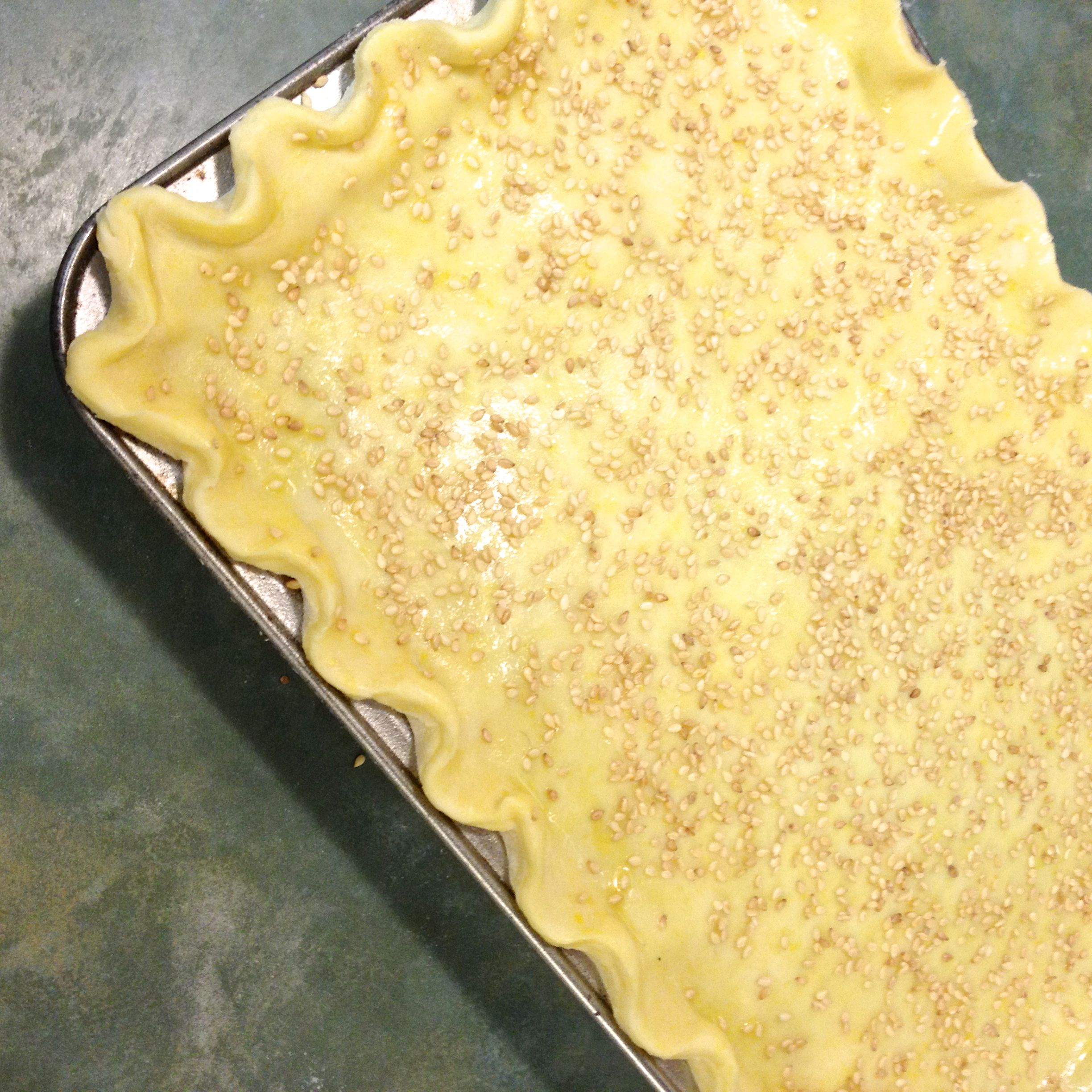 The pastry is just a simple short-crust, and the filling has a few staples, but there is room for experimentation (in other words – what you have on hand). Make the pastry ahead of time, so it can rest in the fridge for a few hours, or overnight.