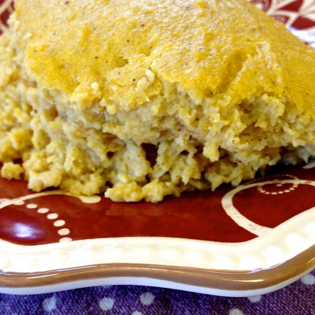 I finally found an old James Beard recipe from 1965 in one of my books. I had seen pumpkin & sweet potato versions, so thought I could use up some leftover butternut squash. When cooking it, the fragrance of the spices reminded me of bread pudding, and likewise, when eating it, the texture was very similar. Savory with just a hint of sweetness, it’s definitely meant to be served as a side dish, much like a stuffing or dressing would be. It’s easy to imagine it sopping up gravy. This would be a welcome addition to the holiday feast for everybody, including anyone who is gluten intolerant.