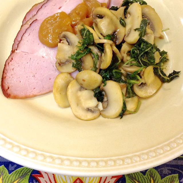 Now another of their granddaughters is making a home here. She was on the island last weekend, measuring rooms, going over the water system and such, with the present owner. She brought along a friend, and we gathered for dinner one evening. I knew what I was serving, so was very relaxed as our evening slipped along. At least I thought I knew what we were going to eat. When I got out the Brussels Sprouts, I realized I had only enough for three or four per person. I was going to sauté some mushrooms and decided to extend them with some baby kale. Here’s what I ended up doing, and towards the end of the meal we decided the recipe was a “keeper”.