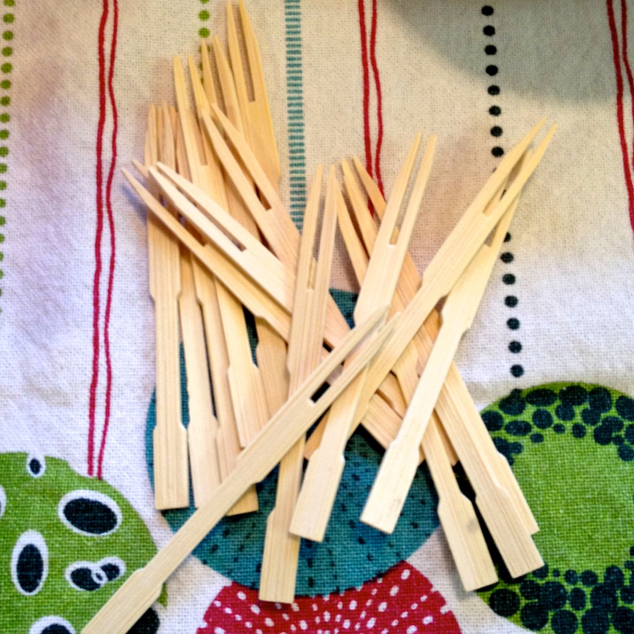 Slip in a fork into each salad, and arrange on a platter or board.