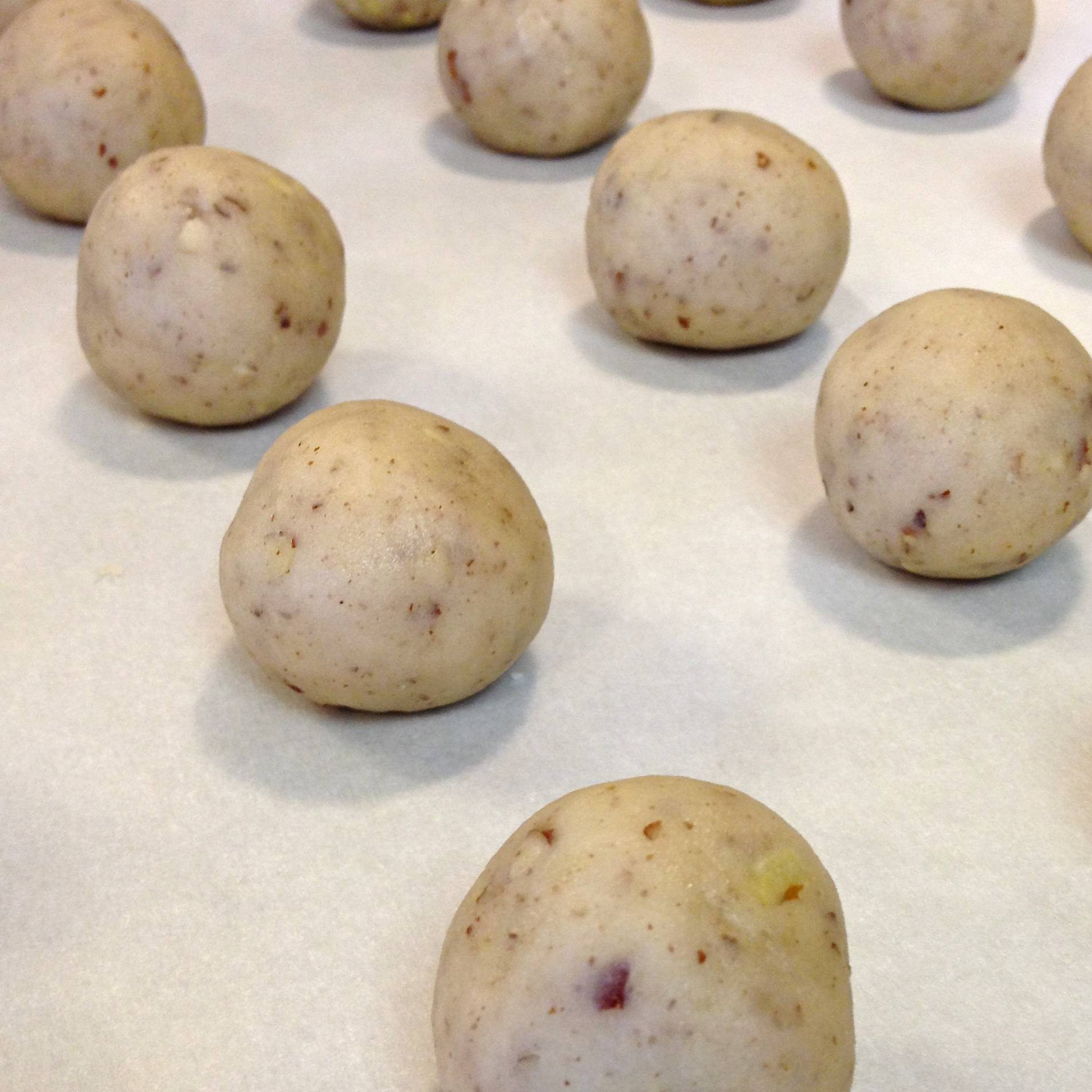 Arrange on the lined baking sheet about 1½“ apart.