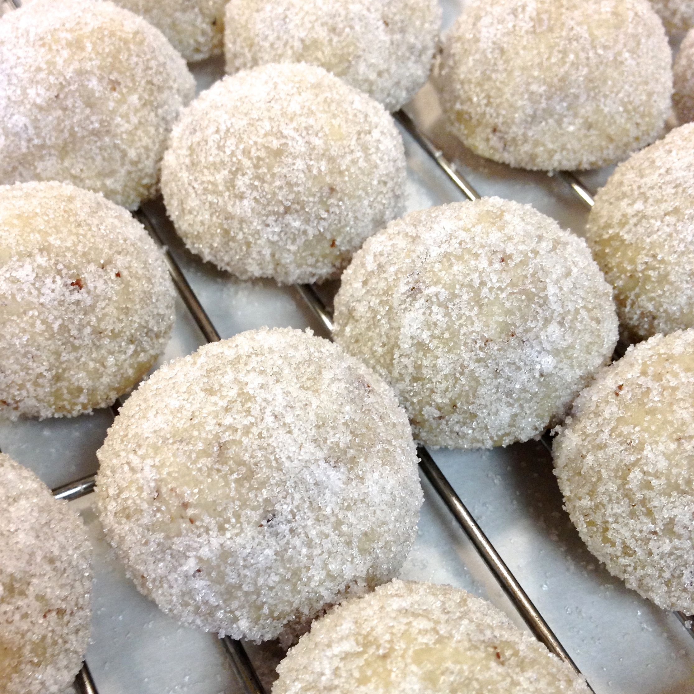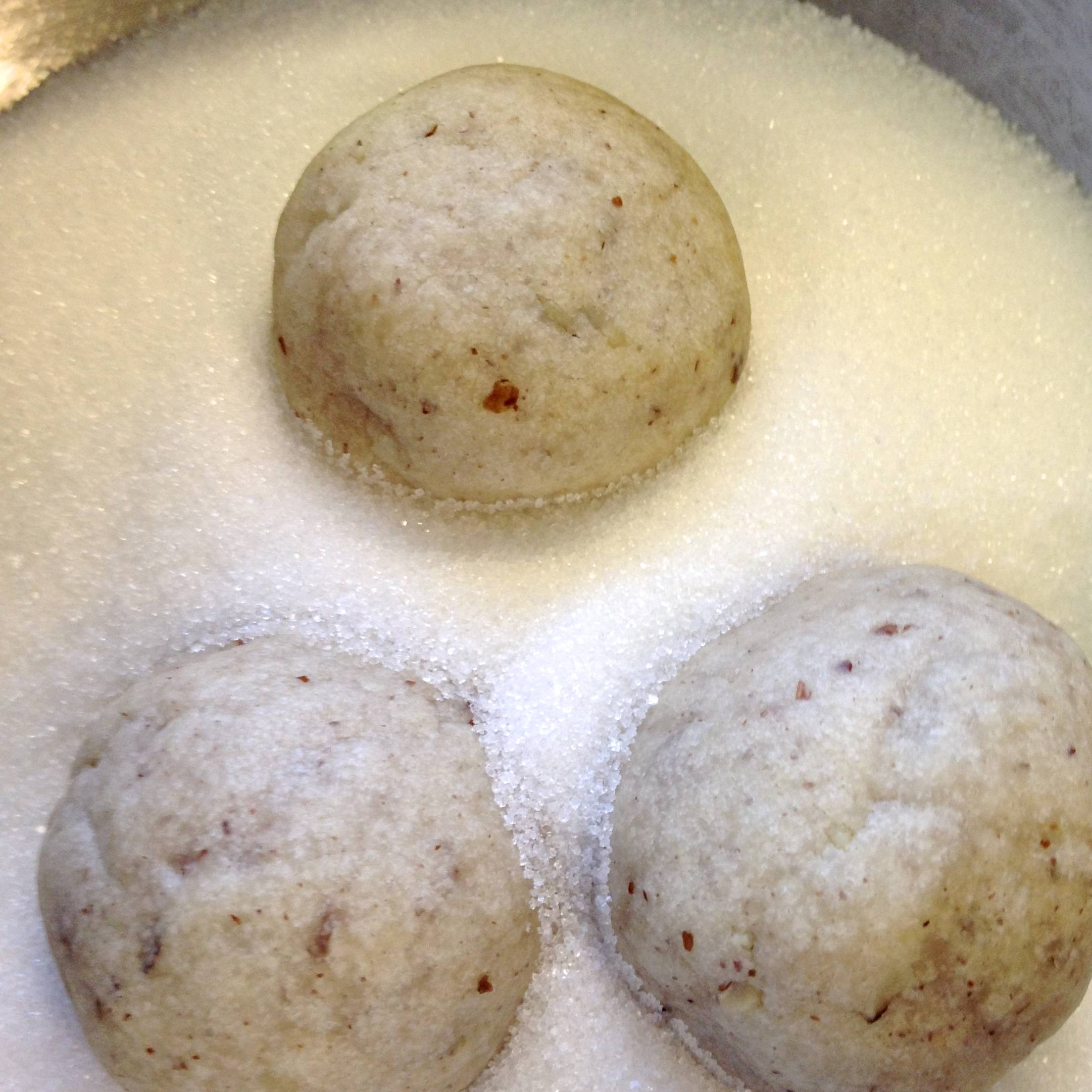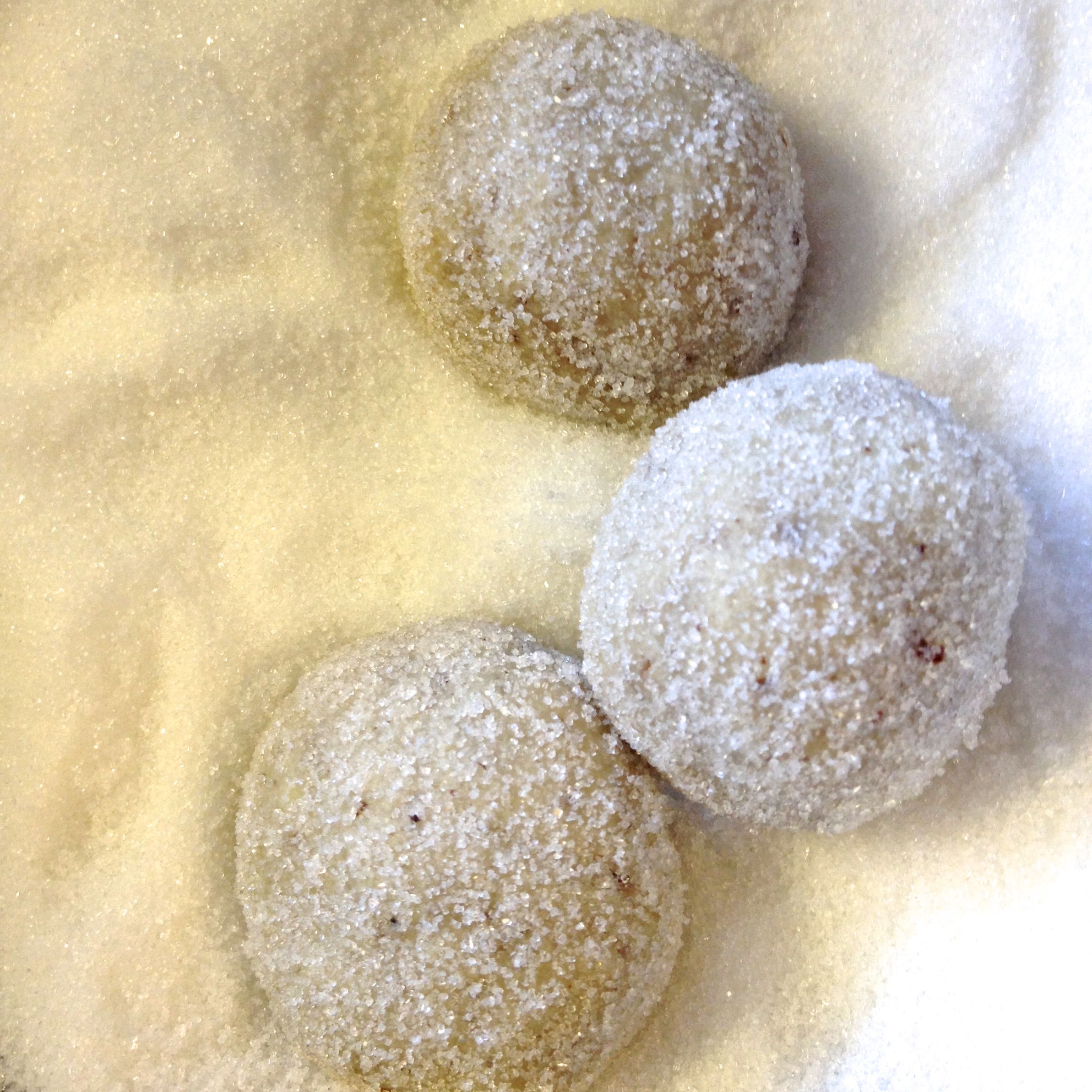 Remove from the oven, and let rest for 2-3 minutes until they are firm enough to roll in sugar.